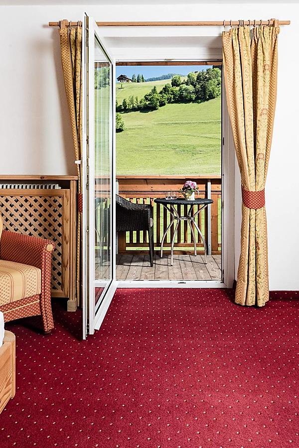 La camera singola Sidonia, dal nome della sorella minore della principessa del popolo dei Fanes, accoglie gli ospiti in un’atmosfera intima e avvolgente, grazie all’arredo in legno e lo stile sudtirolese che riscalda l’ambiente.