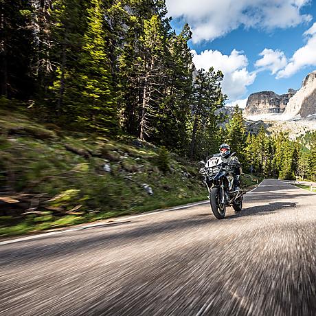 Motorradfahren in den Dolomiten - ganz einfach traumhaft! Jeder Pass ist anders, die Aussicht einfach atemberaubend, und die tosenden Wasserfälle, kristallklaren Seen, Almwiesen und magischen Gipfeln ein absolutes Highlight